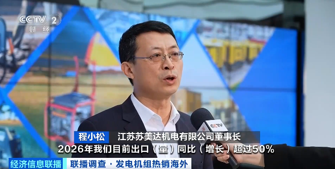 江苏苏美达机电有限公司董事长 程小松:2026年,出口量同比增长超过50%。德国市场今年的订单同比增长超过100%,东南亚市场的订单也大幅增长。