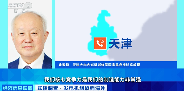 天津大学内燃机燃烧学国家重点实验室教授 姚春德:我们的核心竞争力是制造能力非常强,发动机的制造水平在全球首屈一指,产品品质和海外同类型企业旗鼓相当,但是交付周期肯定比它短。